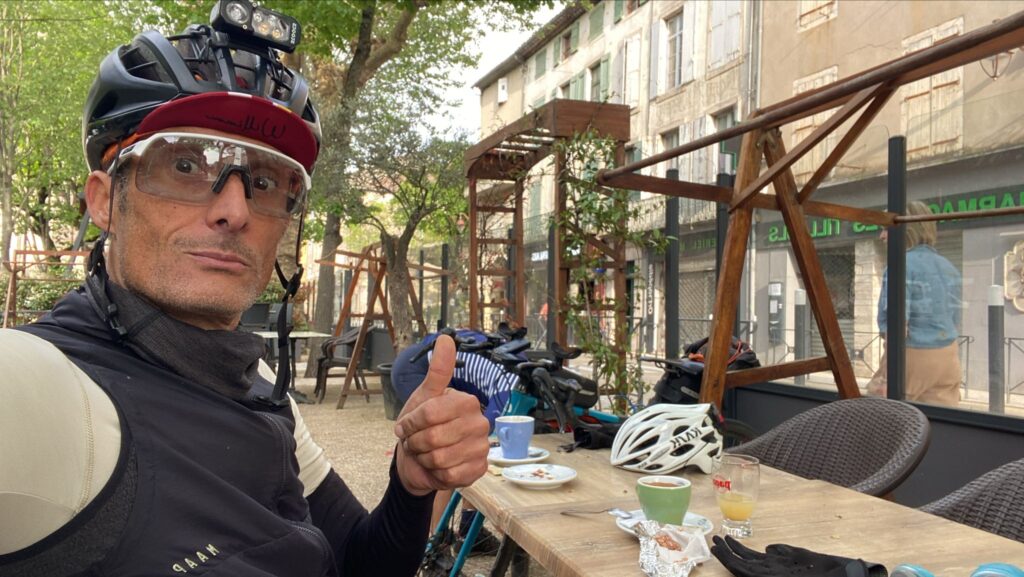 « La Ô Gravel Occitanie, c’est plus que du vélo c’est prendre le risque d’un saut dans l’inconnu, c’est devoir constamment improviser, anticiper, s’adapter aux circonstances, garder la maîtrise de soi : où dormir ? quand manger ? où s’arrêter ? Comment gérer son effort, son sommeil ? Et c’est aussi l’occasion de belles rencontres humaines avec les locaux ou avec ses compagnons de route (spéciale dédicace à Stéphane et Rémi !). »