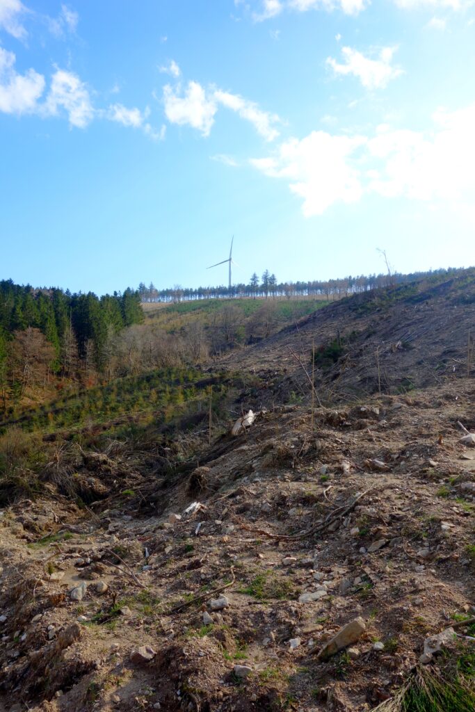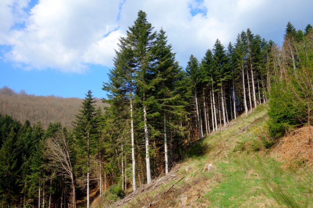 The recent storms have caused extensive damage to the mountain ranges of Occitanie; the Montagne Noire has also been affected. Significant damage is also caused by clear-cutting; its widespread use in the mountain ranges (this is the case in the Montagne Noire, where many forests belong to large banking or insurance groups) poses real environmental challenges: destruction of biodiversity, soil degradation (erosion), often followed by uniform replanting (a single species) which will be slow and impoverished, disruption of the water cycle (increased runoff, reduced evapotranspiration, release of carbon stored in biomass and a decrease in CO₂ capture, thereby impacting the climate), all for the sake of a harvest that is certainly efficient and mechanised.