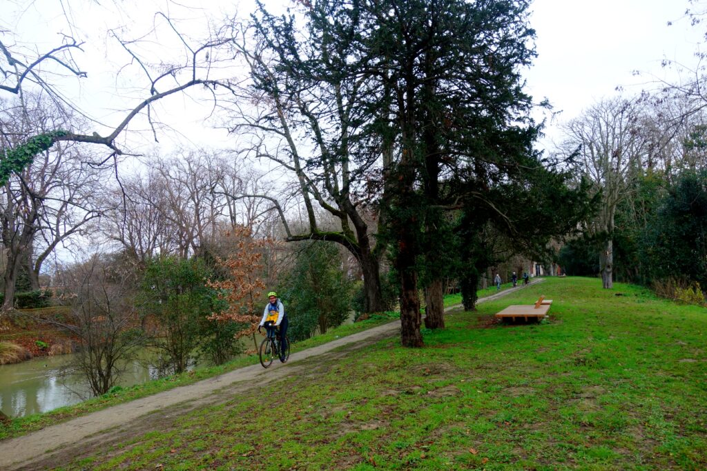 Nous franchissons une seconde fois la Garonne pour nous rendre au Parc de la Poudrerie, puis une troisième fois, pour passer sur l’autre rive et entamer le chemin du retour par le Fer à Cheval, la Prairie des Filtres et le quartier de St-Cyprien – République et enfin, une quatrième et dernière fois au point de départ, toujours par les berges.