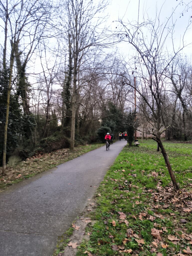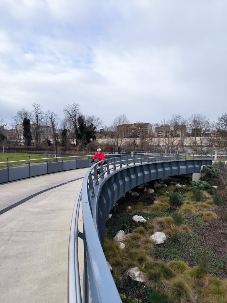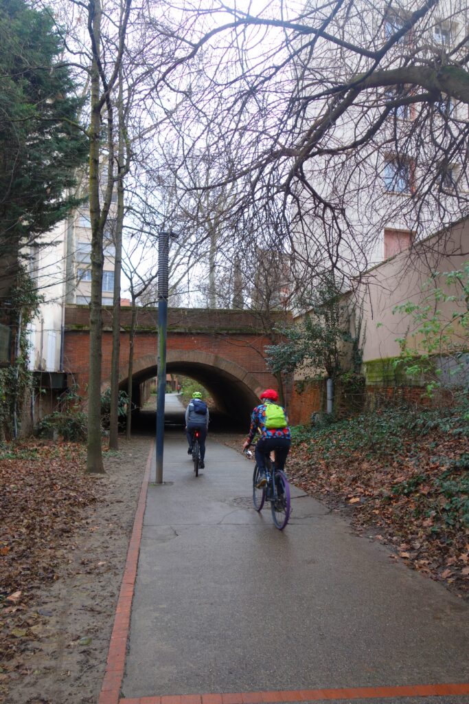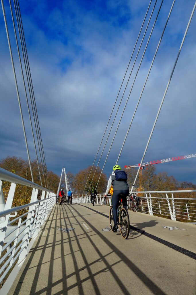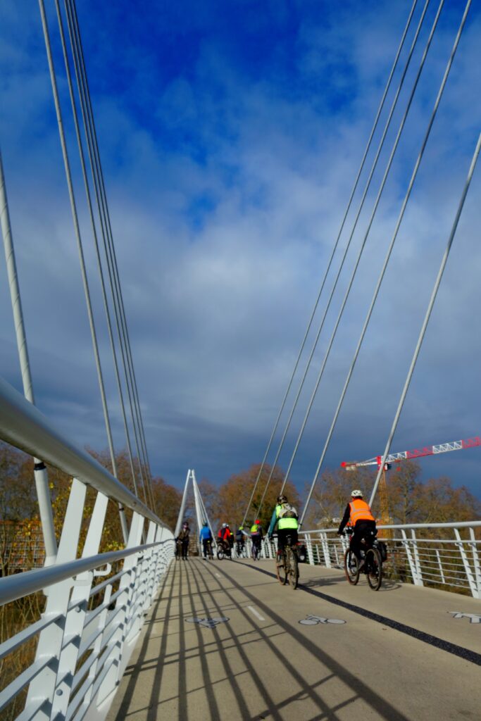 Le premier rendez-vous était fixé à 10h00, au Port de l’Embouchure. Pour les 12 membres participant à la Family Ride du matin, une balade urbaine d’environ 18 km parfaitement plate empruntant principalement les deux rives de la Garonne était à l’ordre du jour. Nous avons donc d’abord suivi la Coulée Verte jusqu’au Quai St-Pierre, puis rejoint l’Île du Ramier par le Pont du Halage de Tounis et le Pont-St-Michel avant de faire un petit crochet plus urbain en direction du Grand Rond et de traverser les quartiers de St-Michel et d’Empalot.