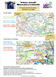 Le Vélo Club de Mondonville, affilié comme nous à la FSGT-31, propose la 36ème randonnée en Mondonvilloise avec :